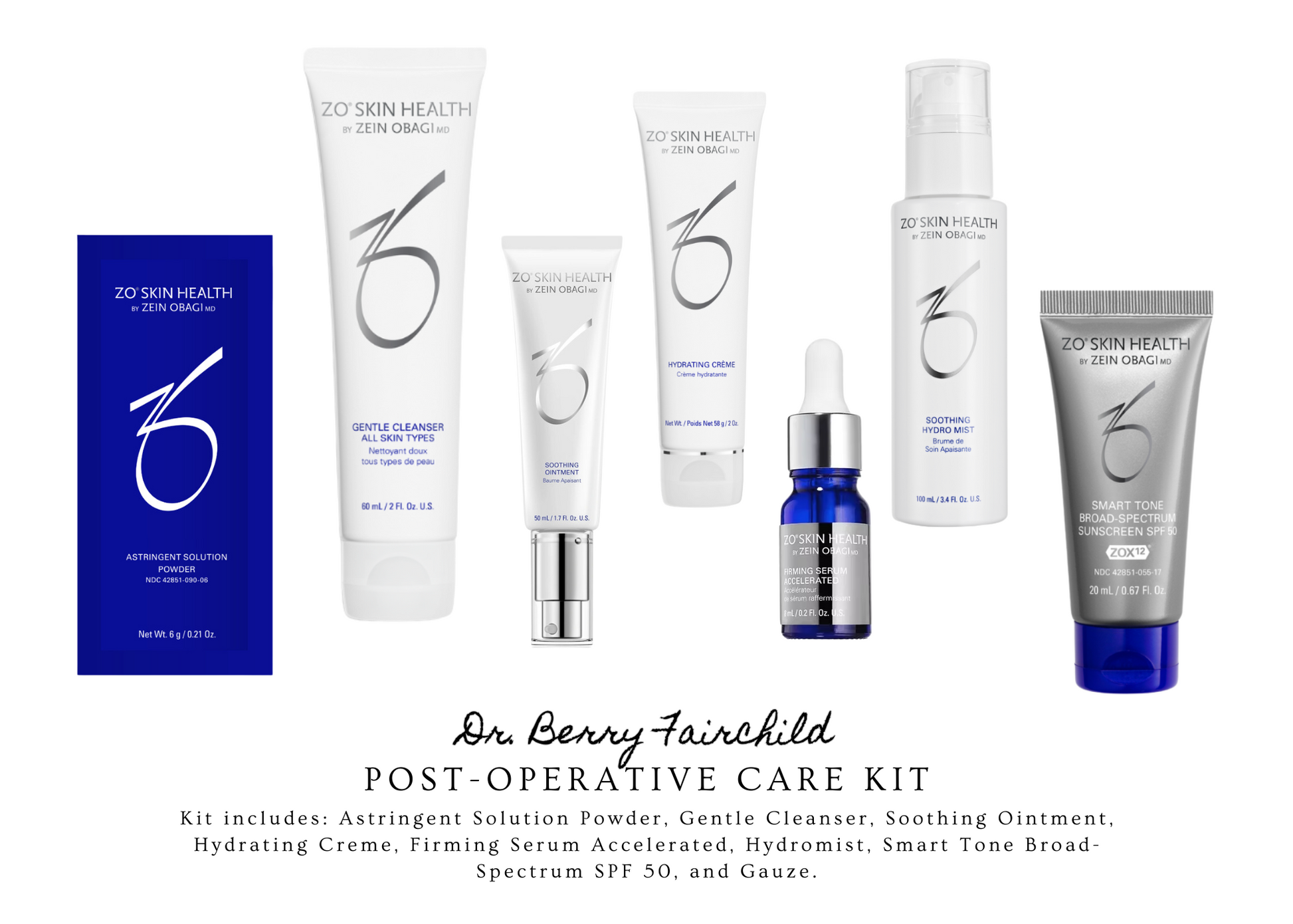 Kit includes: Astringent Solution Powder, Gentle Cleanser, Soothing Ointment, Hydrating Creme, Firming Serum Accelerated, Hydromist, Smart Tone Broad-Spectrum SPF 50, and Gauze.